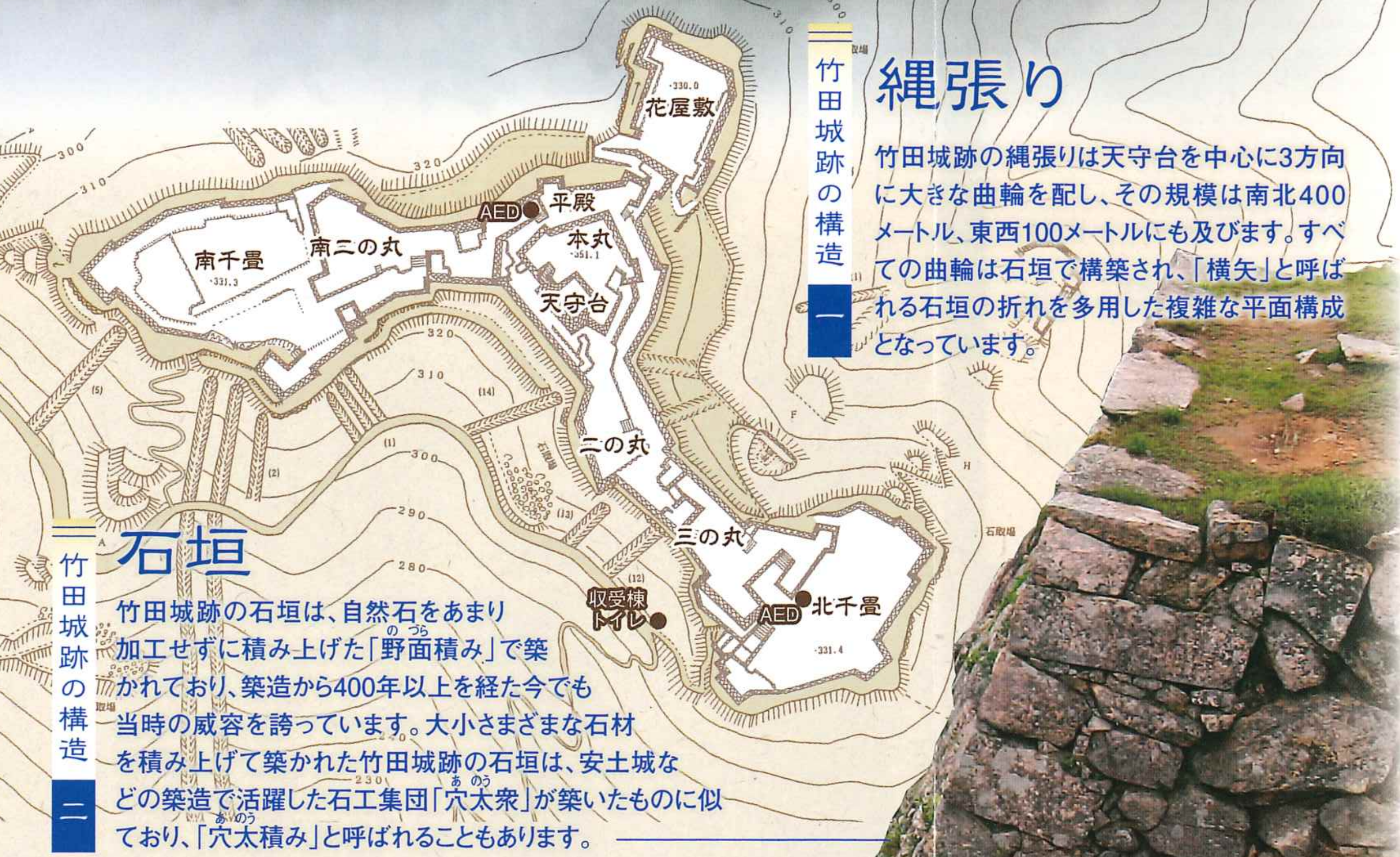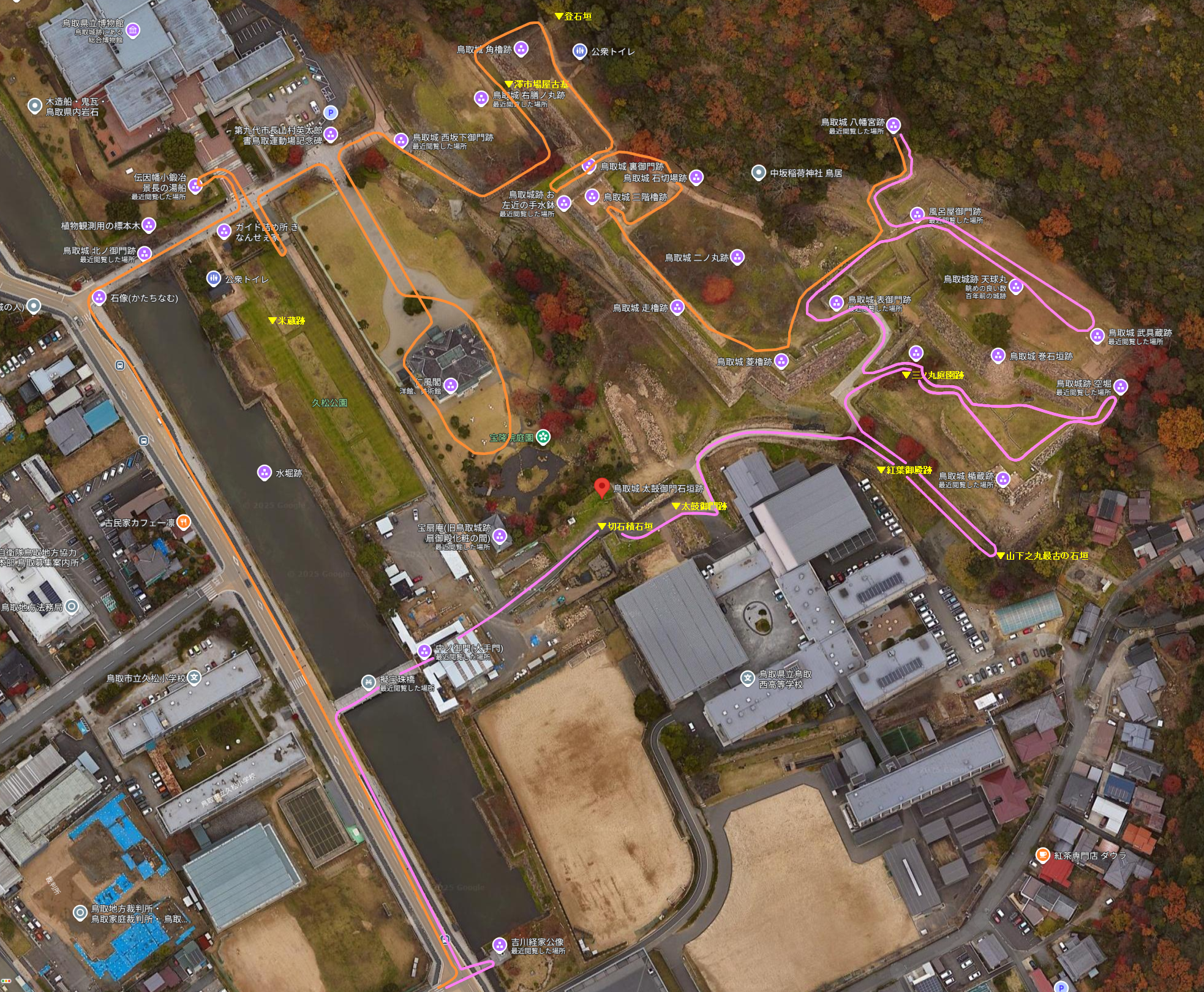 二ノ丸→菱櫓跡→走櫓跡→三階櫓跡→石切場→裏御門跡→お左近の手水鉢→角櫓跡→登石垣→澤市場屋古墓→右膳ノ丸跡→西坂下御門跡→仁風閣→宝扇庵→米蔵跡→因幡小鍛冶景長の湯船→北ノ御門跡